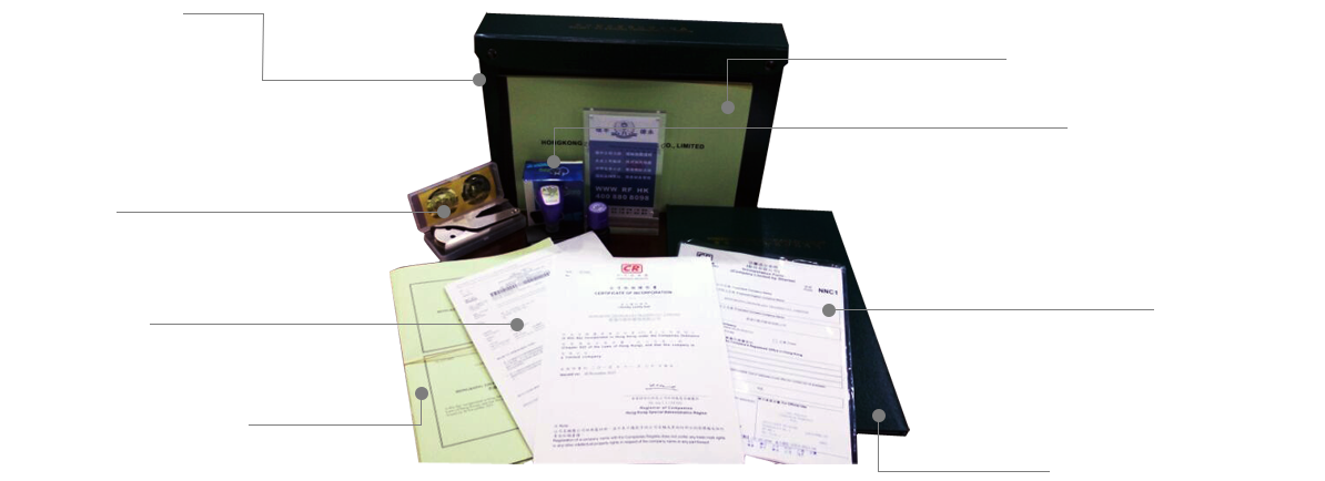 根據香港新《公司條例》第32章規定,政府出證後您將獲得以下全套法定資料,將由我們整理後郵寄給您。